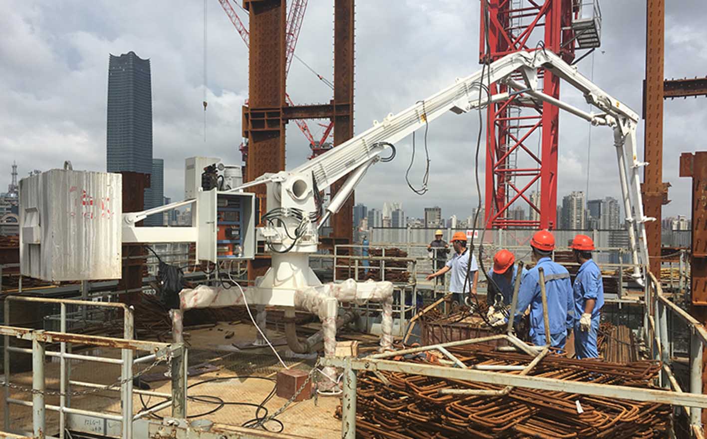 1.臂架分為三節(jié),全液壓驅(qū)動(dòng),R型結(jié)構(gòu),折疊、展開靈活方便,并且可360°回轉(zhuǎn),布料范
